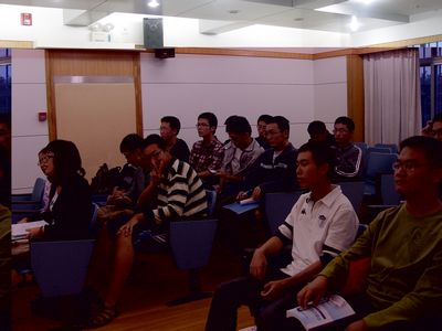 陈海翔老师介绍了08级导师制的开展情况及从其中获得的一点经验,刘乃安老师则对大家的本科学习提出了建议,之后宋卫国、姚斌、汪箭等老师也对自己的研究领域进行了介绍。