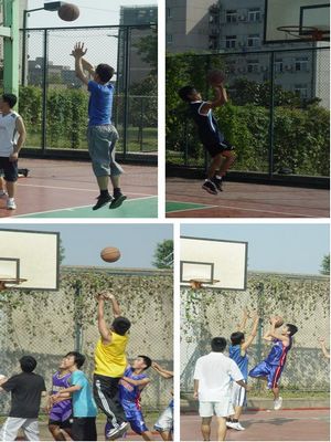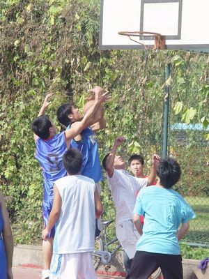 10“火凤凰杯”篮球赛正如火如荼地进行着,2010年10月21日大二队和研一队展开了激烈的角逐。