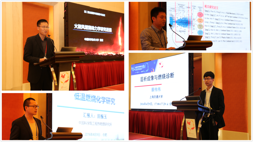 2016年4月8-10日,第二届全国青年燃烧学术会议在合肥召开。会议由国家自然科学基金委和中国工程热物理学会燃烧学分会主办,中国科学技术大学火灾科学国家重点实验室和中国工程热物理学会燃烧学分会青年工作委员会承办。国家自然科学基金委工程与材料科学部三处刘涛处长和纪军主任、中国工程热物理学会副理事长姚春德教授、中国工程热物理学会燃烧学分会主席姚强教授和秘书长齐飞教授、中国科学技术大学朱长飞副校长、火灾科学国家重点实验室张和平主任以及来自全国64家单位的近240位青年燃烧学者参加会议。来自全国的21位燃烧领域资深专家受邀担任会议点评嘉宾。