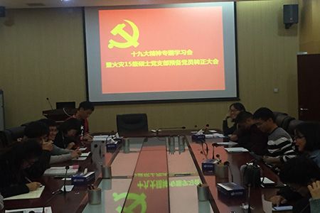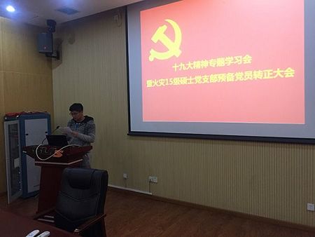 在全面学习研读党的十九大报告的基础上,为深入学习新时代中国特色社会主义思想的精神实质和丰富内涵,2017年11月14日晚21点整,火灾科学国家重点实验室2015级硕士班党支部与火灾特种楼203顺利召开十九大专题学习会暨火灾2015级硕士班党支部预备党员转正大会。大会经讨论和票决,最终确定窦清华,苏拓和张时等三名同志转为正式党员。