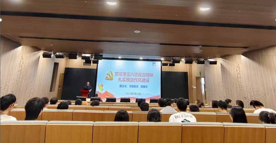 为深入推进党纪学习教育,进一步贯彻落实中央八项规定精神,8月28日下午,实验室党委委员、副主任胡隆华在特种实验楼二楼报告厅,讲授《贯彻中央八项规定精神 扎实推进作风建设》专题党课。实验室教工第一党支部及2023级硕士班第一、第二党支部全体党员参加学习,党课由教工第一党支部书记程旭东主持。