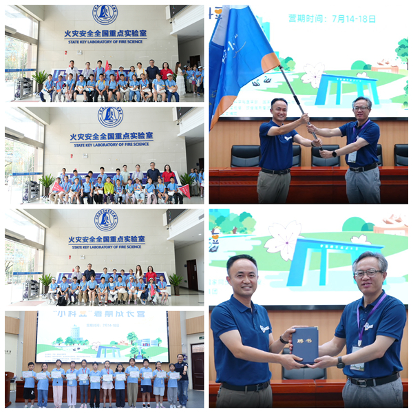 为了缓解我校教职工子女暑期托管难题,引导和帮助孩子们心中播下科学种子,让科大精神薪火相传,由校工会、基础教育集团牵头主办、火灾实验室等五家单位共同承办的2025年“小科豆”暑期成长营于7月14日-18日顺利举办。实验室党委书记、副主任兼工会主席朱霁平、工会副主席肖琳分别受邀参加了开营仪式和闭幕式。