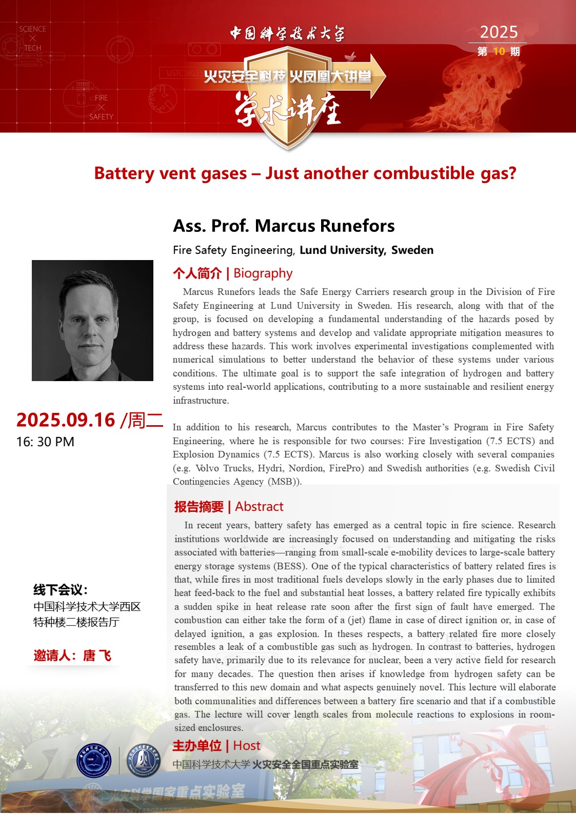 “火灾安全科技火凤凰大讲堂”学术讲座2025第10期—Ass. Prof. Marcus Runefors, Lund University, Sweden