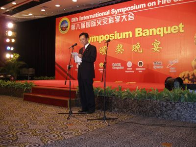 范维澄院士应邀作了“中国火灾科学研究进展”的特邀报告,全面介绍了国家重点基础研究发展规划973项目——“火灾动力学演化与防治基础”的研究进展情况,报告尤其突出了我校火灾实验室在热解、回燃、火旋风、火灾场区网模型、人员疏散、风险评估、阻燃探测灭火等方面的研究成果。此外,我校火灾实验室师生还分别做了10场口头报告,报告内容涉及到火灾安全科学的方方面面,包括火灾统计分析、火蔓延动力学数值及实验模拟、特殊火行为、阻燃技术原理及基于视觉显示的火灾探测技术等理论及实验研究成果,其中翁文国副教授的论文被评为本届大会3篇优秀论文之一。通过本届火灾科学大会,向全世界火灾科学界充分展示了我校火灾实验室在火灾科学基础理论及消防技术方面的研究成就,在世界火灾科学界引起了强力的反响。