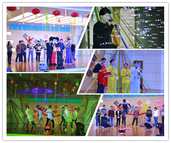 首先由实验室党总支书记宋卫国老师为大家带来新年贺词,宋老师鼓励大家在新的一年里继续努力,坚持不懈。接着是由研一同学陶奇带来的个人独唱《在路上》,这首歌生动地表现出同学们在科研道路上勇往直前、不屈不挠的决心。陶奇同学深情优美的歌声和搞笑的装扮给大家留下了深刻印象。宋卫国老师、纪杰老师、王青松老师以及祝玉泉老师共同参演的相声节目《三句半》中,老师们配合得极为默契,恰当的服装和趣味的对白将晚会带向第一波高潮。接下来是大二同学们带来的舞蹈《让大葱飞》,伴随着欢快的音乐响起,同学们戴着酷酷的黑色面具,身着围裙,手拿大葱,给大家展现了一场轻松愉快的舞蹈。舞蹈之后迎来了趣味活动《足底按摩大比拼》,各年级的同学们争相参与,展现出火灾实验室学子们斗志昂扬的精神面貌。随之而来的第一轮抽奖环节中,共有25位同学被抽中得到了相应的奖品。