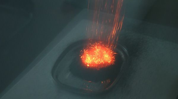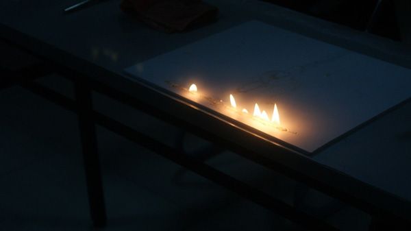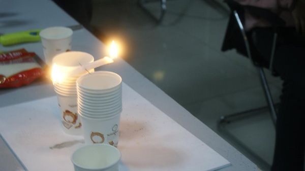 她的方法很简单,就是把纸多对折几次,增加纸的厚度。结果一试验,这个方法是可行的。虽然她的方法不是要给出的标准答案,但是依然得到了奖品和表扬,并且负责这个实验的黄中意同学告诉小朋友们,生活和科学有时候是没有标准答案的。只要敢于尝试,符合要求的方法都是答案。开放性实验之后就是实验演示环节了。首先登场的是孟雅茹同学的实验:火山喷发,即重铬酸钾的燃烧。黑暗中重铬钾火星四溢,宛若火山熔岩喷发流淌。除了火山喷发,还有法老之蛇.蜡烛跷跷板来展示火之美。