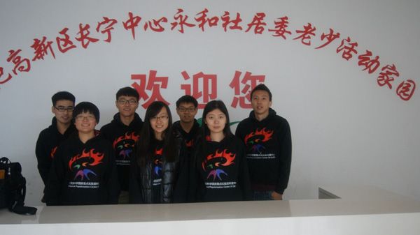下午1时许,同学们冒着凛冽的寒风来到社区老少活动家园。