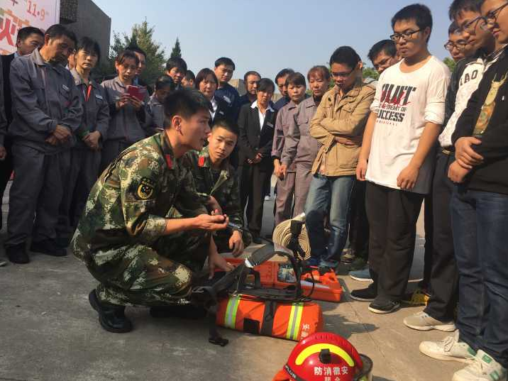 活动在现场师生的满怀期待中拉开序幕,消防官兵首先讲解了消防服的穿戴要点,并且特别强调了所使用的呼吸器在火场中最多能够维持30min,因此一定要在30min内完成对火场人员的救援。随后由2016届本科班的安全委员、学校的后勤管理人员以及到场的其他同学们进行消防服的试穿体验。