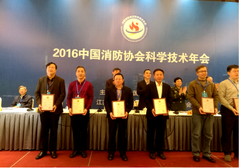 据悉,2016中国消防协会科学技术年会于11月11日在江苏省南京市召开,会议开幕式上颁发了第六届中国消防协会科学技术创新奖,我实验室和合肥科大立安公司合作完成的“细水雾防火挡烟及危化品洗消关键技术”项目荣获一等奖。项目第一完成人、实验室副研究员王喜世博士应邀代表项目组参会领奖。