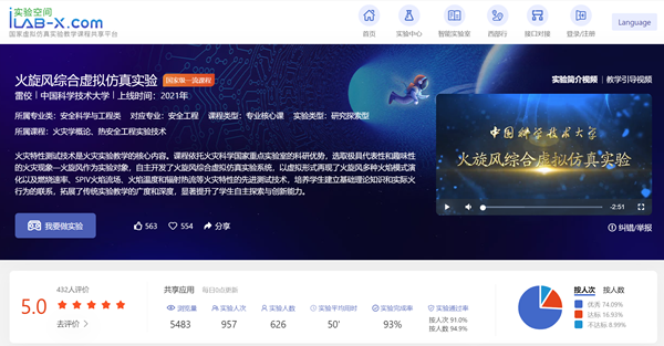 《火旋风综合虚拟仿真实验》课程依托实验室的科研优势,自主开发了火旋风综合虚拟仿真实验系统。课程融合最新科研成果,以火旋风演化过程为主线,采用模块化设计,以虚拟形式再现了火旋风多种火焰模式演化规律以及燃烧速率、火焰三维速度场(SPIV)、火焰温度和辐射热流等火灾特性的先进测试技术,培养学生建立基础理论知识和实际火行为的联系,拓展了传统实验教学的广度和深度,显著提升了学生自主探索与创新能力。