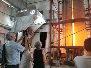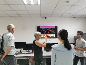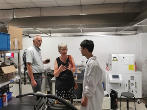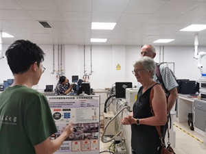 期间,Katharina Kohse-Höinghaus教授参观了飞机防火实验台、森林火灾卫星遥感实验台、锂离子电池火灾防治实验台、傅里叶变换离子回旋共振质谱仪实验台、雷击火实验系统和火灾化学研究室,听取了实验台介绍,并观看了四面墙火旋风和纱幕火旋风演示实验。