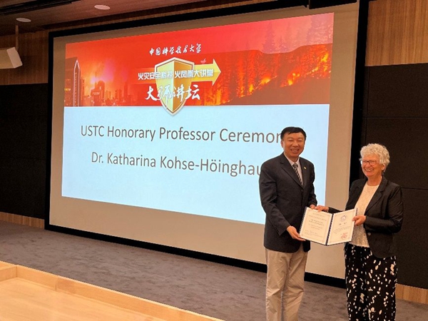 Katharina Kohse-Höinghaus教授表示对受聘中国科学技术大学名誉教授感到非常荣幸和骄傲,分享了与我校在过去10余年的合作经历,并为我校师生做了题为Combustion Chemistry and Diagnostics for The Future的学术讲座。报告采用线上线下相结合的方式,2900余名校内外师生通过线上平台同步观看直播。报告围绕国际能源可持续发展和在碳中和背景下如何开展燃烧研究展开。Katharina Kohse-Höinghaus教授展示了与燃烧化学反应相关的最新测试方法和诊断技术,以及采用原位诊断技术对燃烧过程进行分析的研究成果等。她认为基础燃烧化学的研究,无论对于大型火灾的预防、探测和机理研究,还是对可持续发展领域的未来能源和生产系统的减碳方面都具有重要的价值。