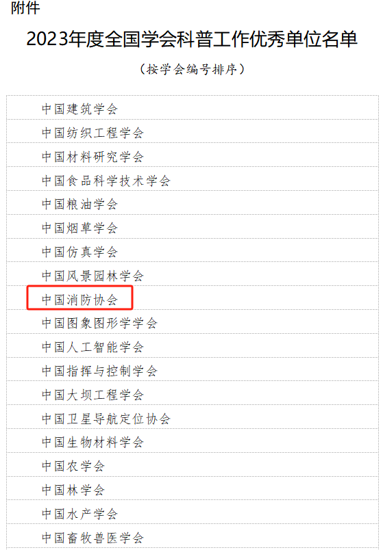 近日,中国科协公布了“2023年度全国学会科普工作优秀单位名单”,对87个科普工作表现突出的全国学会予以表扬,中国消防协会位列其中。这是中国消防协会继2018年后,第五次获此表彰。