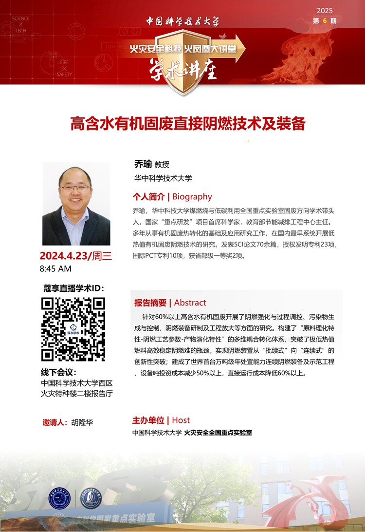 “火灾安全科技火凤凰大讲堂”学术讲座2025第6期—华中科学技术大学乔瑜教授