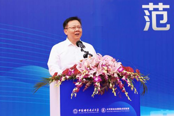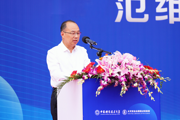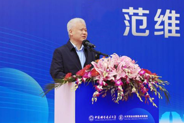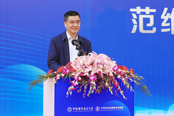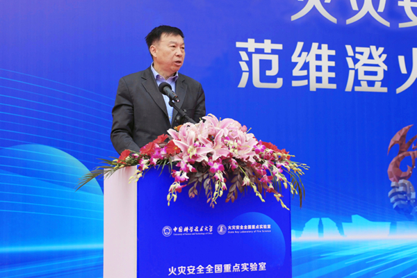 舒歌群代表学校致辞,他对受邀出席仪式的各位领导和嘉宾表示欢迎和感谢。他回顾了实验室在范维澄院士的领导下自1989年立项以来的建设成就。他表示,实验室重组是实验室发展的里程碑,实验室作为国家战略科技力量应当牢记“科教报国、追求卓越”的初心使命,紧紧围绕国家重大需求,努力作出更大贡献。他指出,学校设立范维澄火凤凰奖学金的目的,是要激励广大学子学习和传承范维澄院士的教育家精神和科学家精神、投身火灾安全科技事业、为平安中国贡献青春力量。