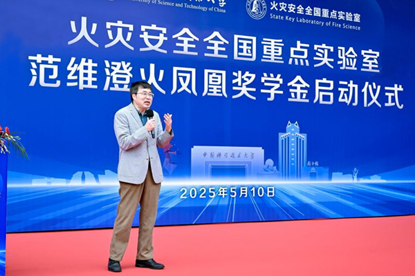 范维澄院士作为实验室创始人深情致辞。他指出,实验室名称从“火灾科学”到“火灾安全”,两字之变,承载着新时代赋予的更高要求。“火凤凰”象征着浴火重生、追求卓越的精神。与家人共同设立与捐赠的奖学金以“火凤凰”命名,是对同学们的期许。希望以此激励实验室的学子在科研道路上不断创新、突破自我,为安全学科的建设与发展添砖加瓦,为国家安全事业的发展贡献自己的智慧和力量。