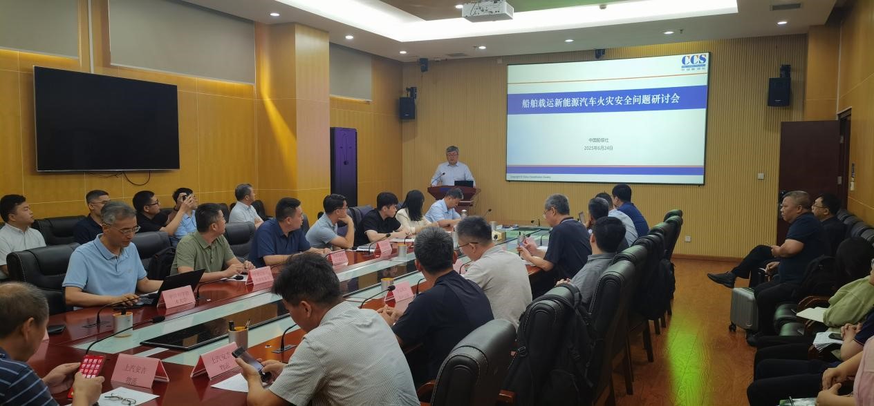 624日,由中国船级社主办、中国科学技术大学火灾安全全国重点实验室承办的船舶载运新能源汽车火灾安全研讨会在合肥成功举办。会议由中国船级社张道坤主任主持。交通运输部海事局,中国船级社科信处、科技委、国际业务开发服务处、数字办、研发中心、上海规范所、武汉规范所、海工技术中心、大连分社、青岛分社、海南分社、水上载运装备安全研究院,上海船舶研究设计院,应急管理部天津消防研究所,上海交通大学船建学院,中远海运特种运输股份有限公司,上汽安吉物流股份有限公司,深圳市比亚迪锂电池有限公司,渤海轮渡集团股份有限公司,广船国际有限公司等20余家单位的代表参加了会议。