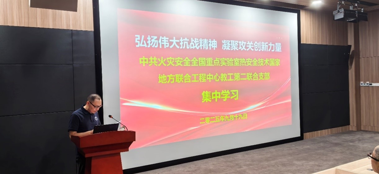 9月19日下午,中共火灾安全全国重点实验室热安全技术国家地方联合工程中心教工第二联合支部(简称“实验室教工第二党支部”)在特种楼二楼报告厅召开集中学习会。会议由实验室教工第二党支部书记肖华华同志主持,支部全体在校党员参加会议。实验室党委书记、副主任朱霁平按照党员领导干部双重组织生活制度要求以普通党员身份参加学习交流。