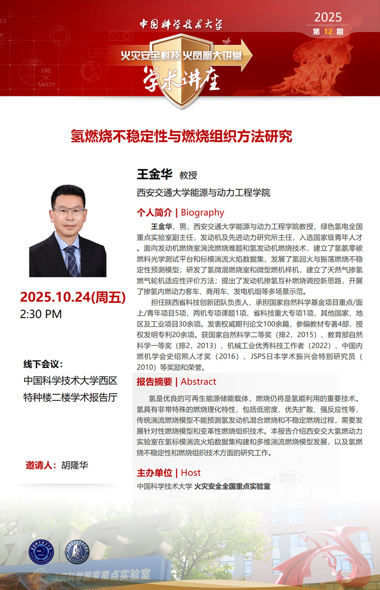 “火灾安全科技火凤凰大讲堂”学术讲座2025第12期—西安交通大学王金华教授