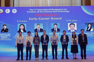 开幕式上,揭晓了首届“Fire Phoenix Awards”奖项获奖者。该奖项旨在表彰全球范围内在消防科学与技术领域做出卓越贡献的学者。经国际专家严格评审,共评选出来自中国、日本、比利时、美国等国家的14位获奖者。获奖名单如下:香港理工大学林少润、中国科学技术大学胡皓玮、中国矿业大学(北京)陶振翔、中国矿业大学安伟光、中国矿业大学(北京)赵金龙、南京工业大学王苏盼获Early-Career Award(早期职业奖);武汉理工大学李开源、日本东京科学大学Sayaka Suzuki、东北林业大学杨光、比利时根特大学Tarek Beji获Distinguished Young Scientist Award(杰出青年科学家奖);应急管理部沈阳消防研究所于春雨、美国FM Global公司Ning Ren、国网安徽省电力有限公司电力科学研究院张佳庆、北京玮航科技有限公司(以下简称“玮航科技”)李也获Distinguished Young Industrial Specialist Award(工业界杰出青年人才奖)。