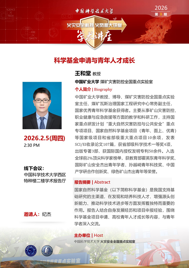 “火灾安全科技火凤凰大讲堂”学术讲座2026第3期—中国矿业大学王和堂教授