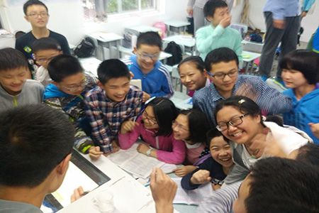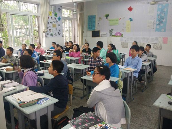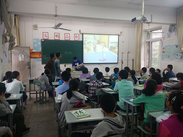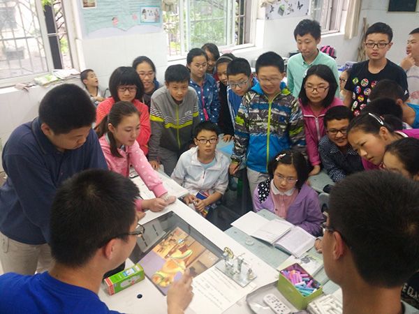 27日下午五点,在团长沈远的带领下,大家步行至安大附中。在学校老师的帮助下,大家找到了去展示的教室,同学们顿时来了兴致,纷纷围上前来。当听闻团员们的来意后,给予了热烈的欢迎。