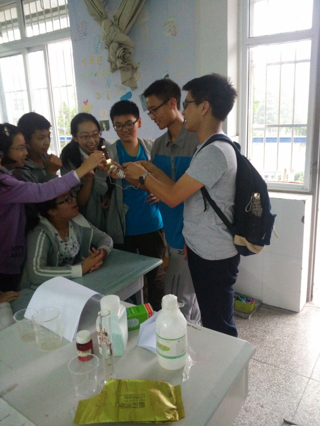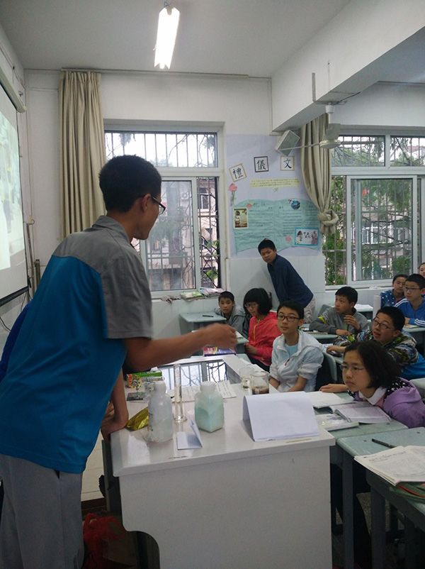 活动中,同学们对于实验是非常的感兴趣。对于很多不知道的实验原理都十分好奇,频频向团员们发问。团员在回答得也十分漂亮,既让同学们明白了其中的科学原理,又引发了同学们一阵阵欢快的笑声。想必这对他们来说肯定是一次难忘的体验。对我们而言也是一次难忘的经历。