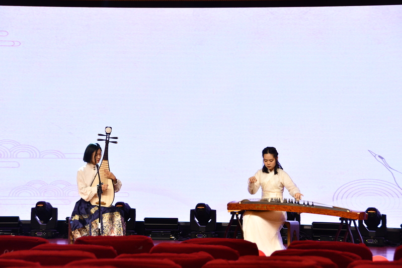 开场舞《We go》以动感的舞姿和充满热情活力的表演将晚会的气氛瞬间点燃。秦振海同学为我们带来了一首磅礴大气的歌曲《在此刻》,燃起了每一位观众心中浓浓的中国情。大浪淘沙,跌宕起伏,雪山之巅,春晓之时。张首蕤、李晓晴两位同学带来古风串烧节目《大浪淘沙》和《雪山春晓》,将琵琶和古筝两种乐器配合得天衣无缝,衔接得恰到好处。由汤霄杰、喻箫等同学带来的小品《时间都去哪儿了》给大家带来了很多欢笑的同时,也让在信息爆炸的时代里,面对手机的诱惑而迷失的青年陷入思考,警示青年学子应当珍惜时光,不负韶华。