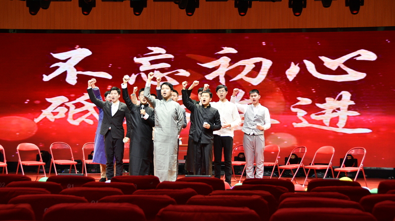 刘凤凯同学给我们带来了一首精彩的RAP《lose yourself》,科研和生活中我们难免会迷失自己,但不要忘记捏紧拳头,咬紧牙关去寻找自己的初心梦想。陈旭恒同学带来《霍元甲》和《庐州月》歌曲串烧,将欢快节奏与悠扬抒情融合,彰显音乐魅力;“树之表演艺术社”带来的话剧《初心》,带观众们一起回到1921年夏天的那艘红船,回顾党艰难的诞生历程,共同感受共产党人那颗炽热滚烫的初心!赵军超同学用一首吉他弹唱《这世界那么多人》让大家回忆起那些青葱岁月,心中对爱的那份执着与坚定。