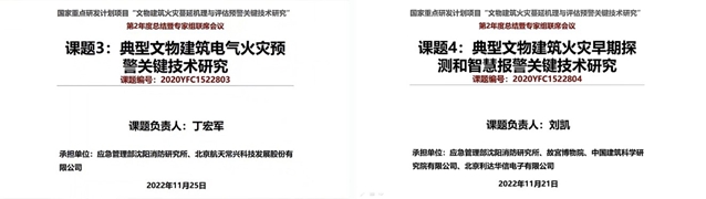 “文物建筑火灾蔓延机理与评估预警关键技术研究”是中国21世纪议程管理中心负责管理的“重大自然灾害监测预警与防范”重点专项(文化遗产保护利用专题任务),于2020年立项。该项目是我国在文物建筑消防安全方面设立的第一个国家重点研发计划项目。项目面向文物建筑消防安全的总体目标,围绕“文物建筑火灾蔓延机理与评估预警关键技术”这一重大科技问题,致力于揭示文物建筑木材引燃、燃烧到木结构火蔓延的动力学演化机理;发展适于文物建筑的火灾风险评估方法和防控体系;建立文物建筑电气火灾监控技术试验平台和抗干扰预警技术;建立文物建筑干扰环境火灾早期探测试验平台,形成抗干扰试验与评测技术、双光电和图像火灾探测技术,并研制配套系统和装备。在此基础上,为文物建筑火灾评估预警提供实用化技术并开展应用示范。