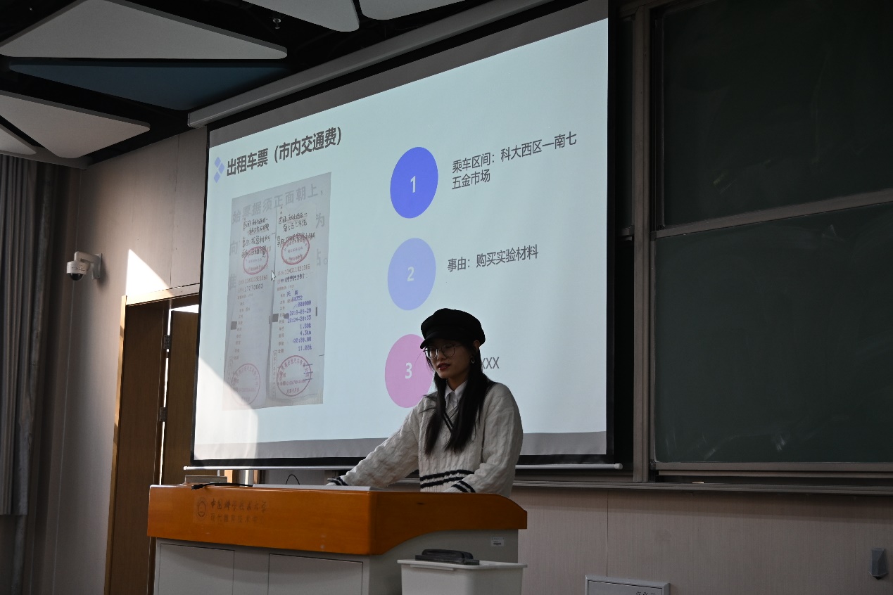 2023年12月2日下午两点半,火灾科学国家重点实验室财务技能培训讲座于西校区三教C座304教室顺利举办。本次讲座的主讲人为火灾安全全国重点实验室新闻中心主编,研究生会办公室主任王梦文,火灾实验室团委副书记王昭宇老师出席本次讲座。讲座的主要内容为校内报销相关知识,包括学生活动报销及课题组日常报销的一些注意事项。